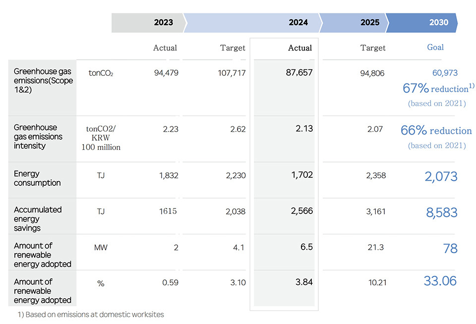 In addition, we will continue to carry out activities with the goal of all sites meeting RE100 in 2040 and carbon neutrality in 2050 by regularly monitoring emission target performance, strengthening investment in energy-saving production processes, and expanding the introduction of renewable energy.