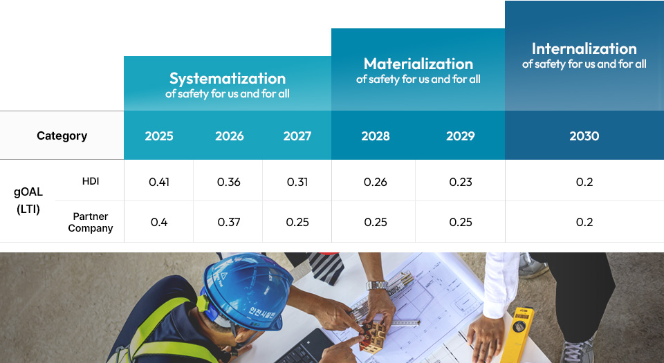The HD HYUNDAI INFRACORE Safety and Health Management Policy is to all members, subsidiaries, and partners who conduct business activities of HD HYUNDAI INFRACORE. In addition, we expect our customers and business partners to participate in compliance with the safety and health management policy.